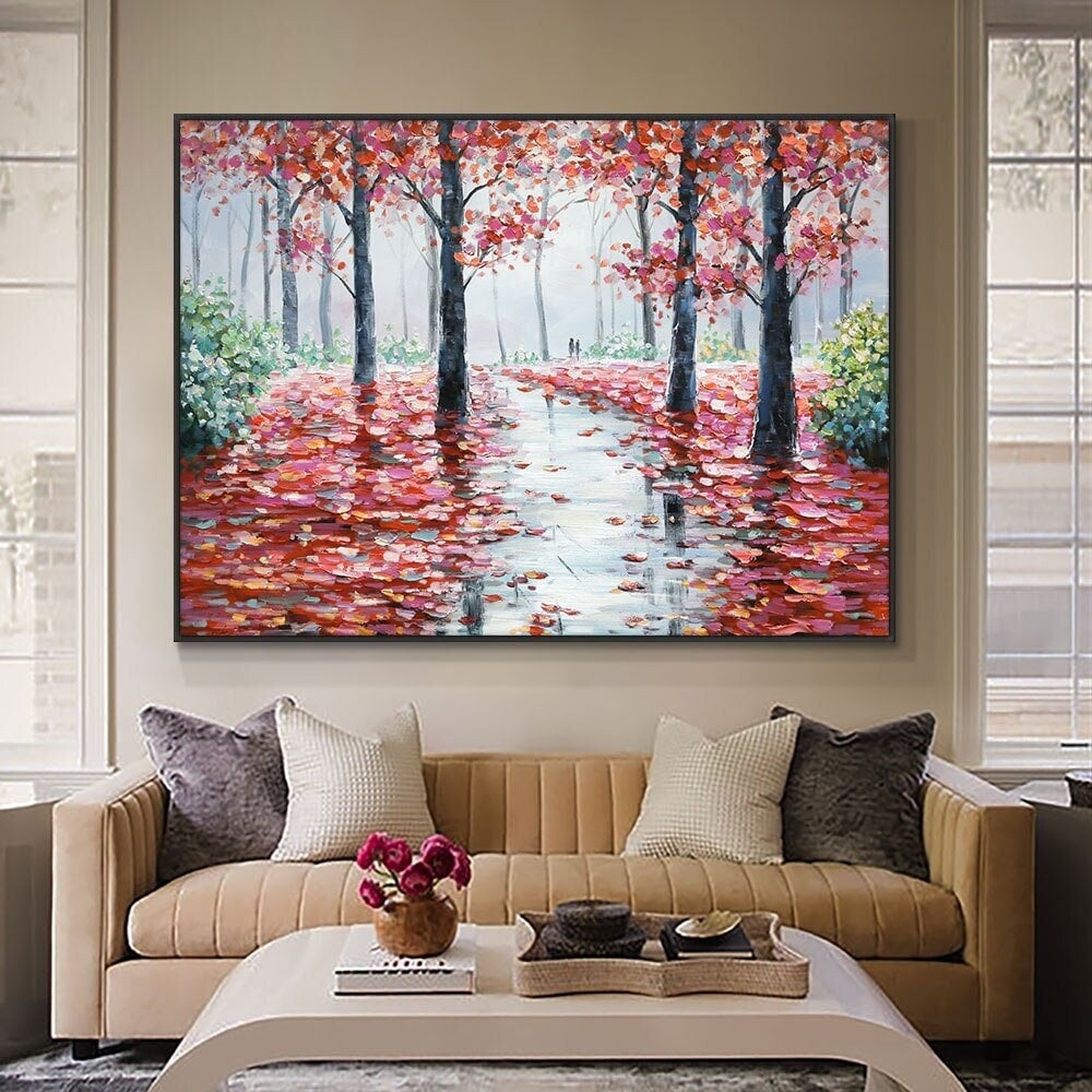 Large Wall Art Fall Colors Living Room Wall Art Nature Painting Landscape Painting Extra Large Wall Art Pink Wall Decor Original Art Artwork