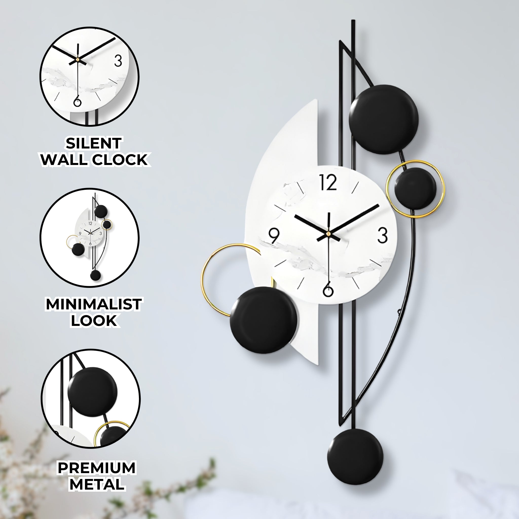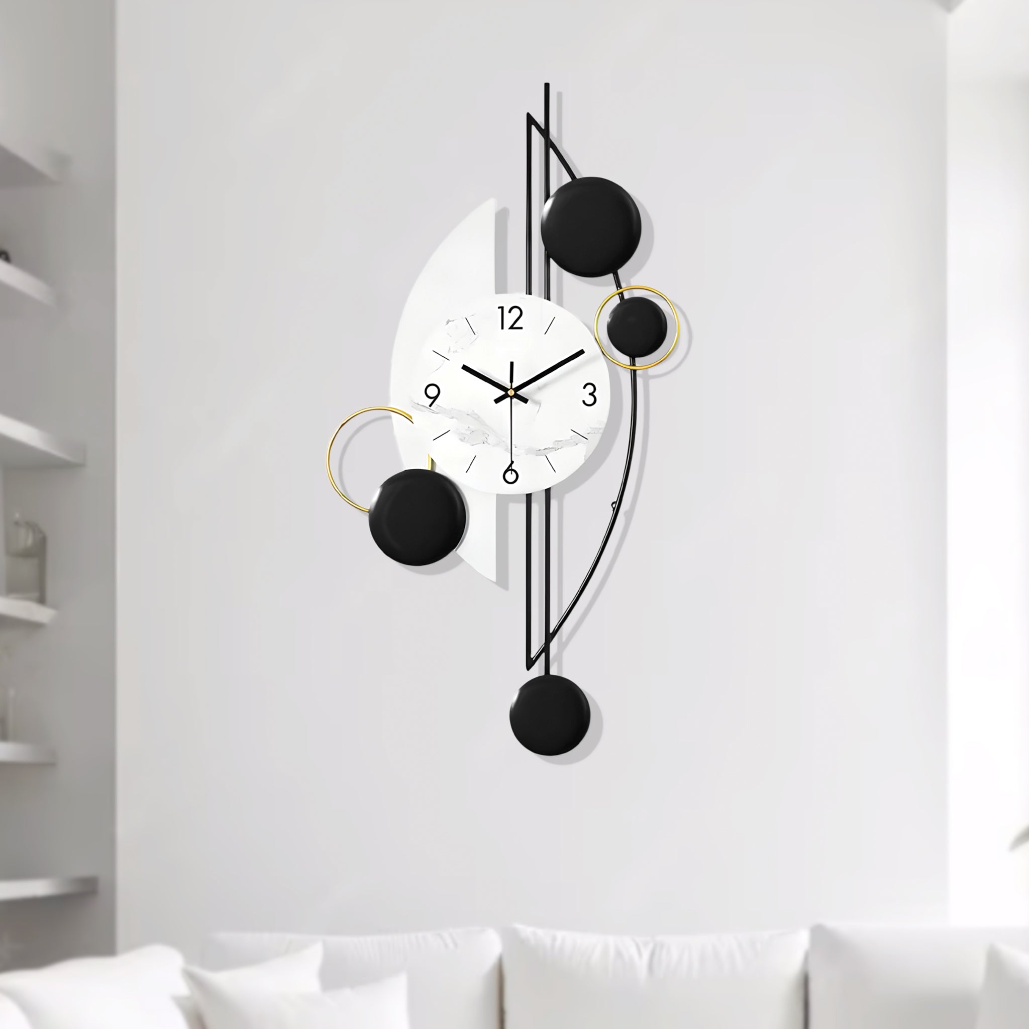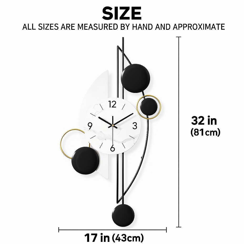 Bid farewell to those irritating tick-tock noises with our whisper-quiet Modern Wall Clock. Made with premium metal finished in white and black, this round wall clock features an abstract frame design for a minimalistic look. The silent operation of this non ticking wall clock makes it perfect for winding down for sleep or studying. With a diameter of 24 inches, the dial of this contemporary wall clock ensures easy readability and precise timekeeping at a glance. Installing this minimalist wall clock is also easy. Simply insert the battery before mounting.