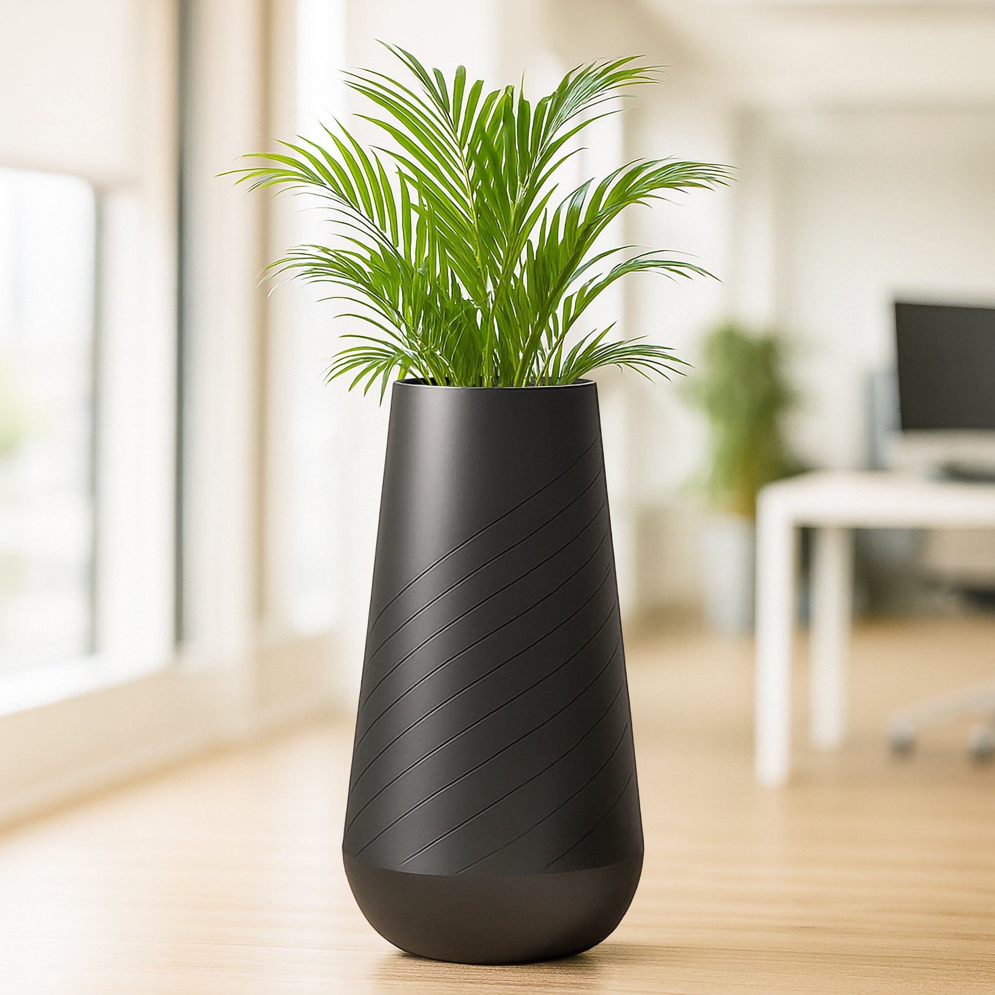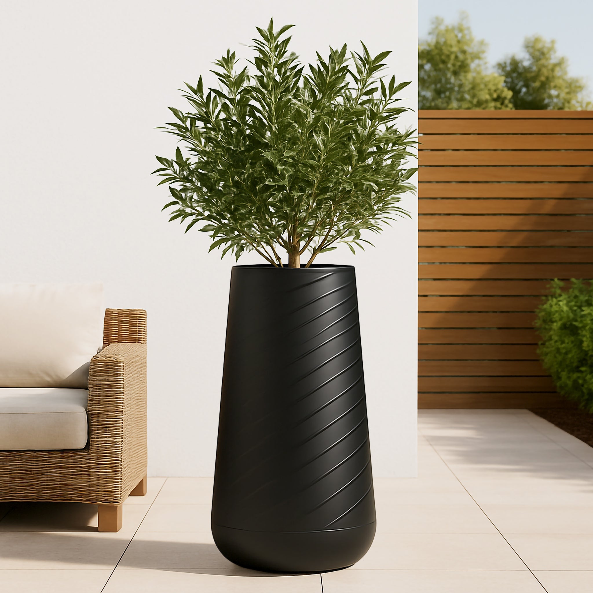 Add a touch of elegance to your space with this Self-Watering Tall Black Planter Pot, designed for both indoor and outdoor use. Standing at 27 inches tall, this minimalist mid-century decorative plant pot brings sophisticated charm to any setting—from your home, office, patio, front porch, to your garden, lawn, yard, backyard, or entrance. Finished in black, this plant pot complements any decor style from traditional to mid-century to contemporary. It's a riser pot so the plants sit about 1.5 feet off the ground, raising overall height and making plants more impactful. Prevent overwatering as it comes with drain holes. A great gift for housewarming, Mother's Day, or any other occasion.